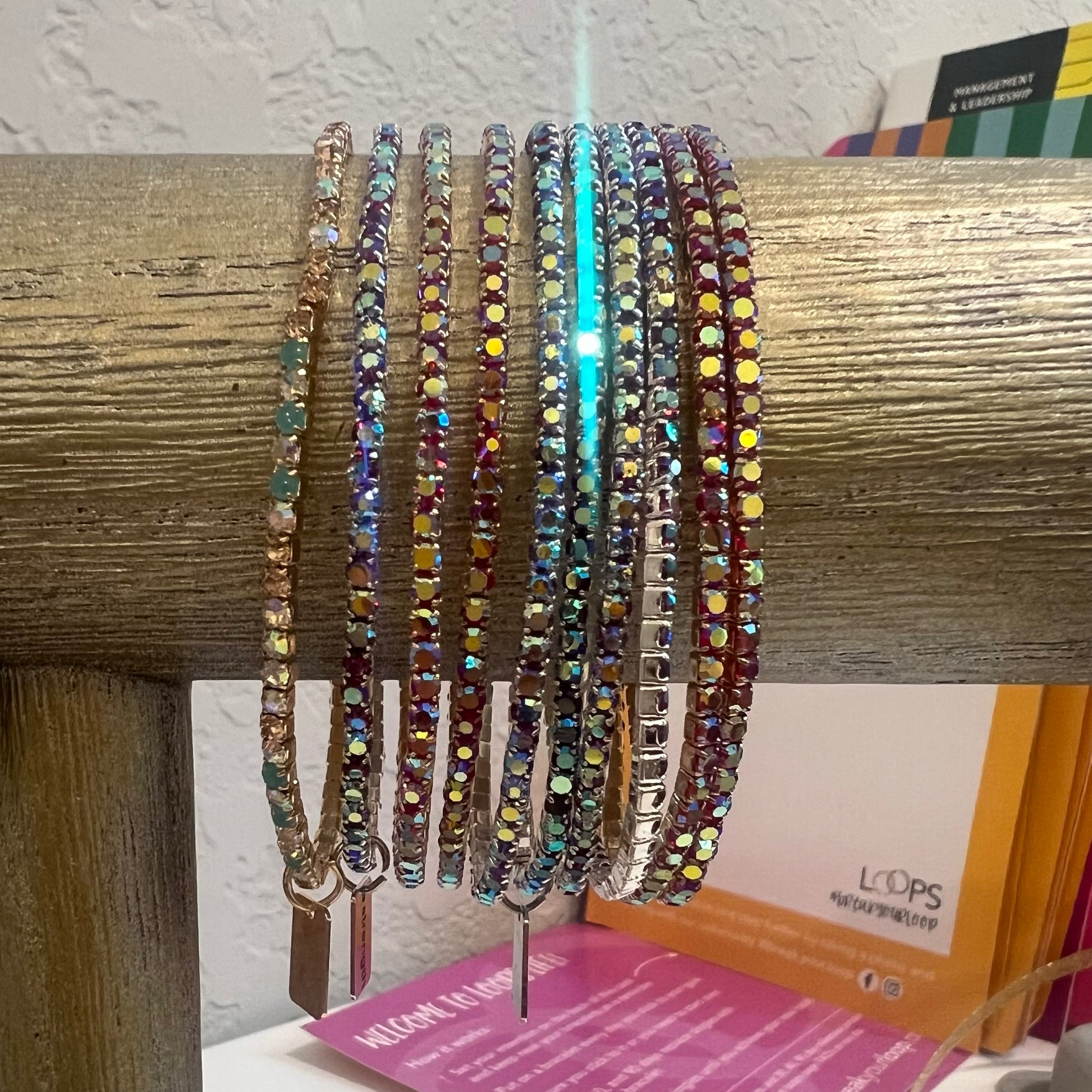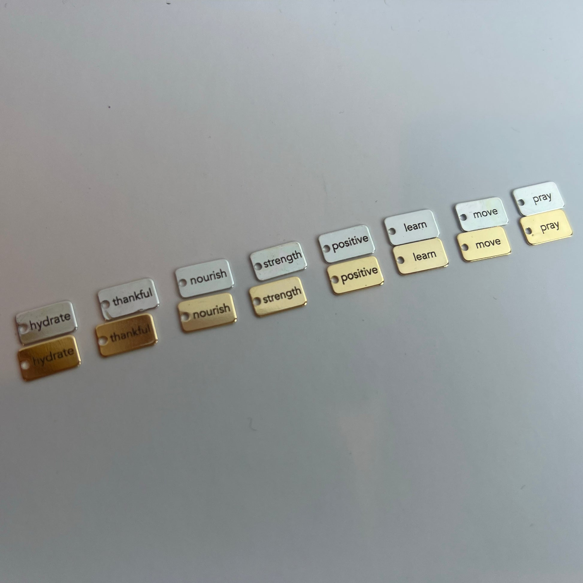 Want to add a charm with your specific intention on it? We have created small charms with our most popular habit changes. Available in gold and silver and come with a stretchy, blingy rhinestone band to compliment your current or new set! One size only. Rhinestone bracelet colors will vary but metal will be silver for galaxy sets or gold for metals set. For bracelet care visit our FAQ's.